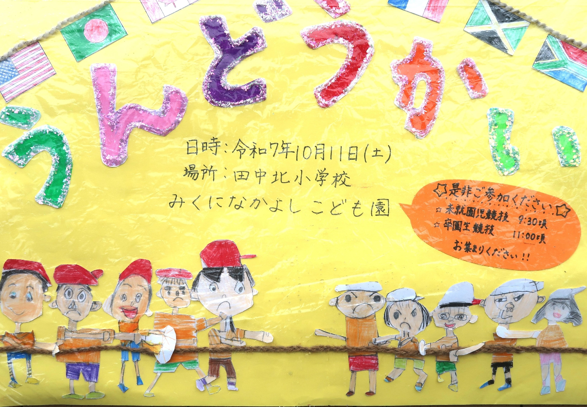 田中北小学校の校庭をお借りして、10月12日(日)に運動会を行います。