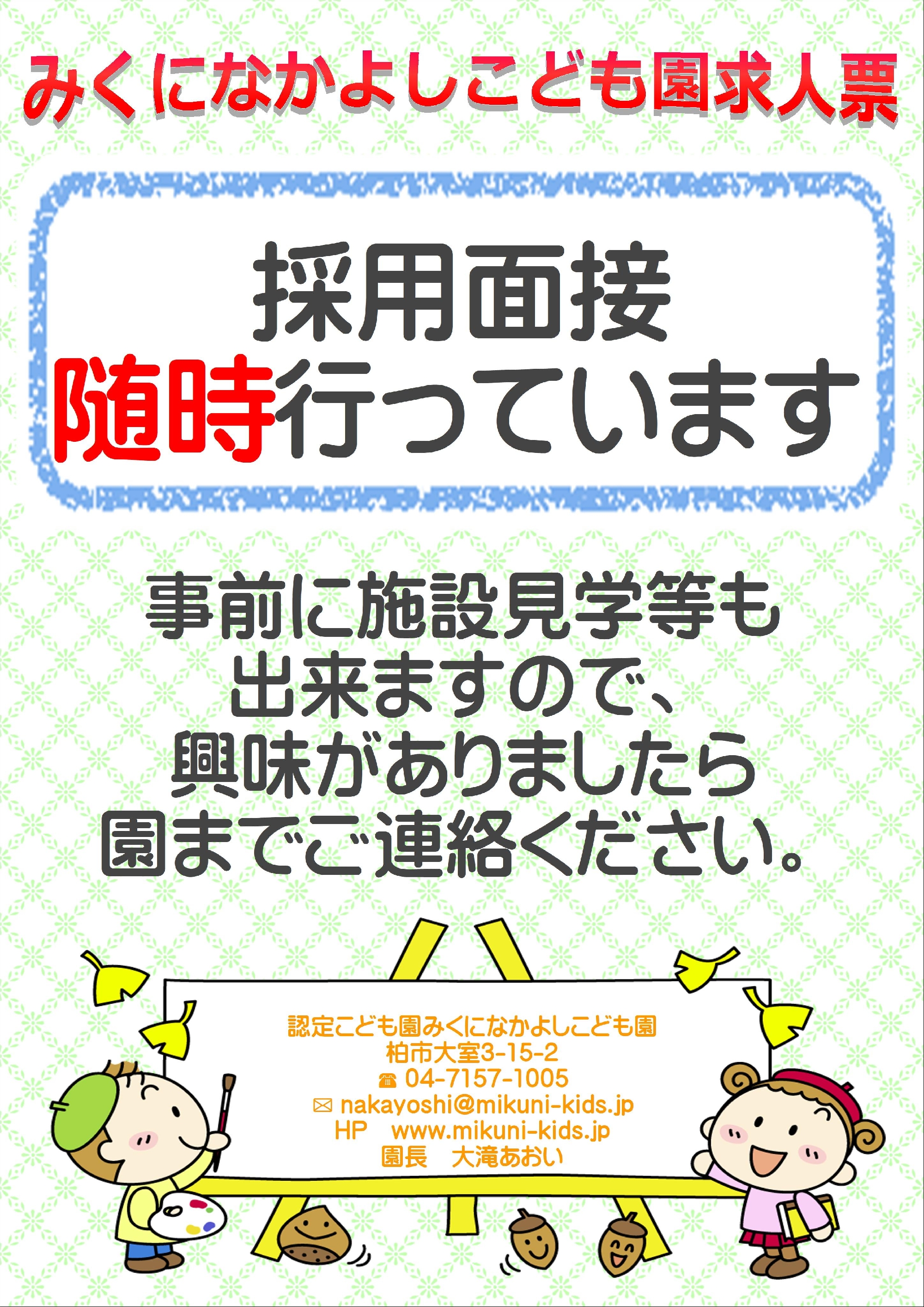 みくになかよしこども園では、新しく働いてくださる先生を募集しています。
