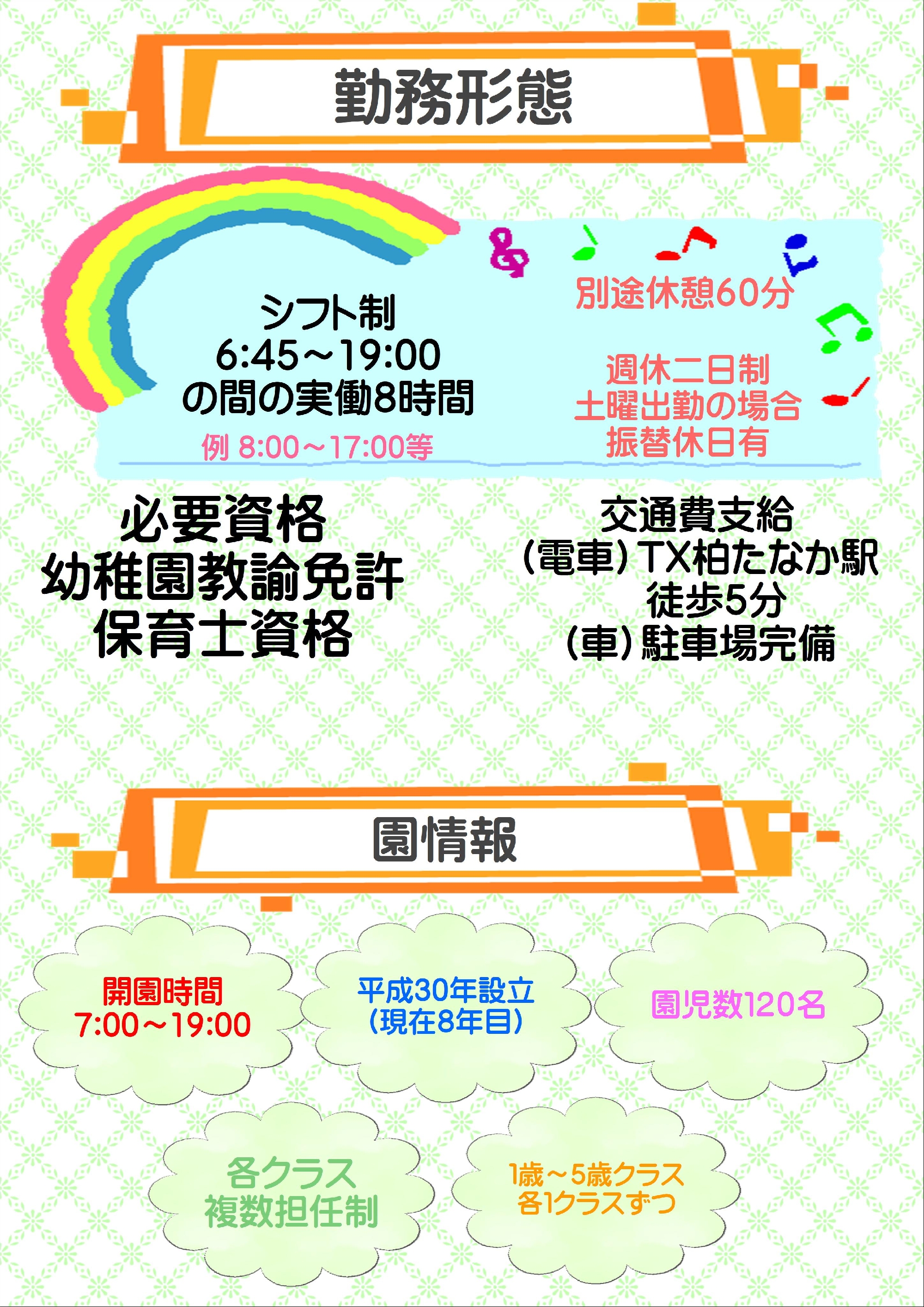 7月19日(土)、柏市内の認定こども園・保育園・幼稚園が合同で就職説明会を開催します。